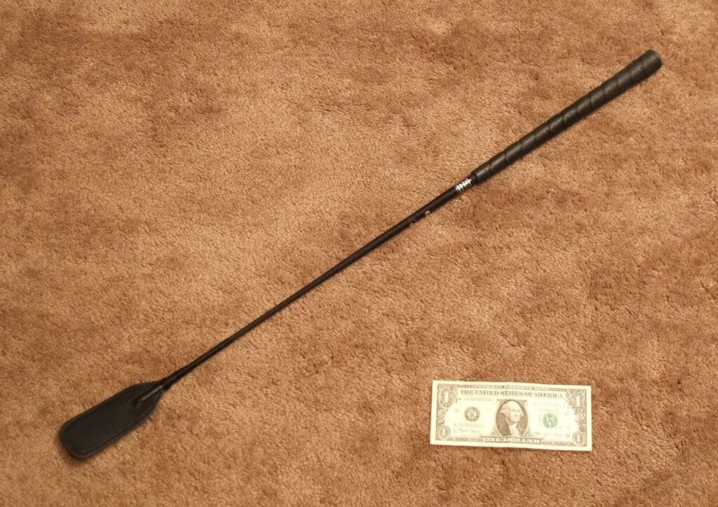 Ten eerste is er de rijzweep. Dit is een lange, dunne zweep met een flexibele schacht en een kleine leren lus aan het uiteinde. Deze wordt normaal gesproken gebruikt om een paard aan te sporen, maar kan ook prima gebruikt worden om iemand aan te sporen tot beter gedrag. Met het leren lusje kun je heel precies een plekje raken, en door de flexibele zweep is het mogelijk om binnen enkele seconden een hoog aantal slagen neer te laten regenen.